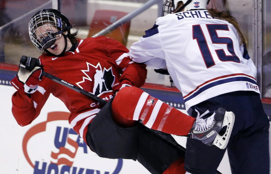 I have a draft of a post for this blog sitting somewhere about short players in the NHL, a surprisingly deep list considering how many people claim this is a sport all about size and that size equals physicality. Last night I watched the 5’7″ Mats Zuccarello take on the 5’11” T.J. Oshie. I’ve watched the 5’8″ Brendan Gallagher go after Zdeno Chara, who in addition to being more than a foot taller than Gallagher is also about 80 pounds heavier than him. Average size is going up, sure, but smaller players are still able to find a way to carve out a place in this league if they have the skill. And there are tall, strong women’s players like Hilary Knight who at 5’11” and 172 lbs is exactly the same height and weight as Claude Giroux.