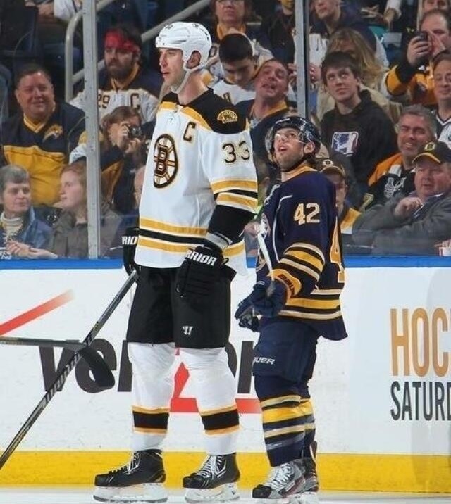 Nathan Gerbe is currently the shortest player in the NHL. There is a sixteen inch height difference between him and the league’s tallest player, Zdeno Chara: